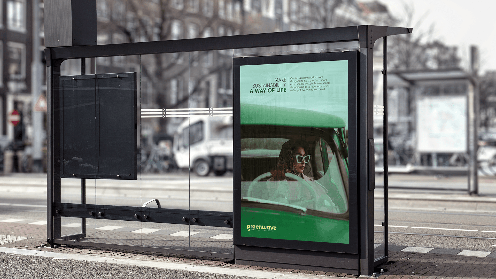 The typography selected for Greenwave is a modern sans-serif typeface. This font was chosen for its clean and rounded feel, reflecting the brand’s straightforward approach towards sustainability.
